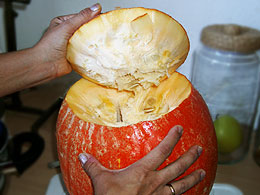 Wer mag, kann sich auch gleich ansehen, wie man eine Kürbis-Laterne daraus schnitzen kann! |
